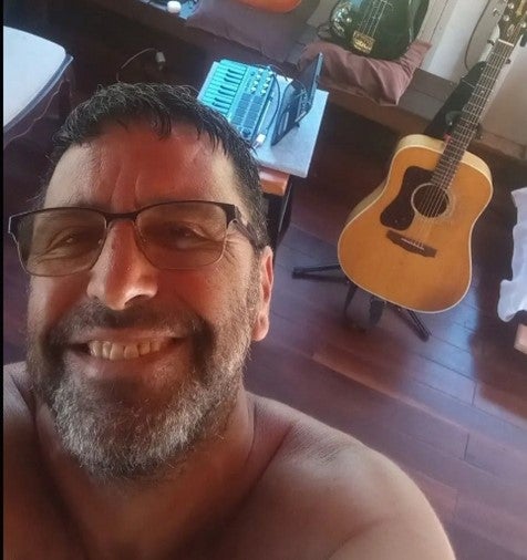 Moceri was last seen wearing unknown colored board shorts, sandals, and no shirt. He was seen wearing black colored framed glasses, carrying to black colored bags and his guitar.